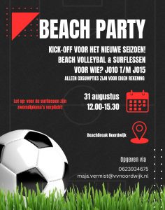 Inschrijven kan tot uiterlijk 24 augustus via: maja.vermist@vvnoordwijk.nl of 0623934675
