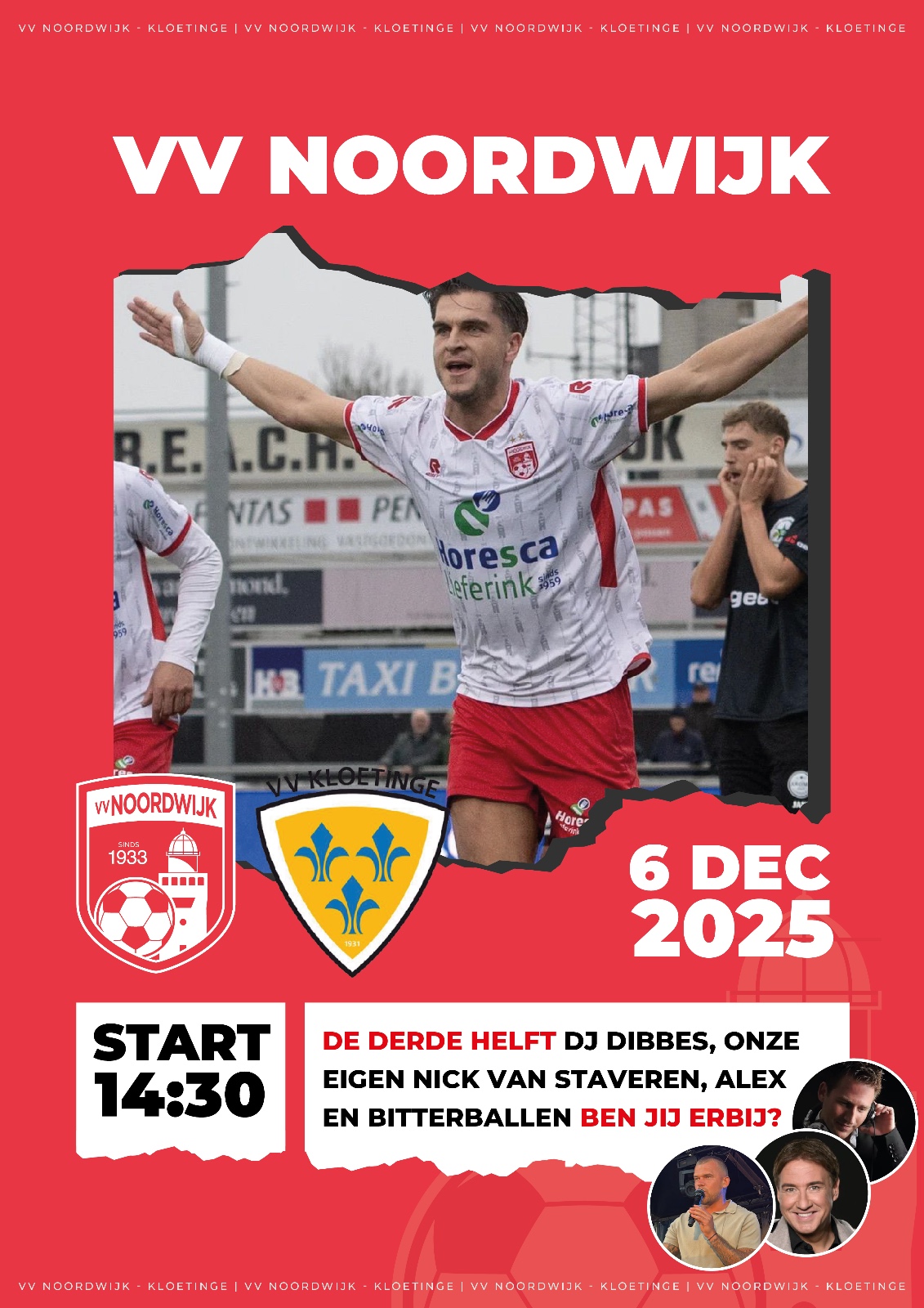Op zaterdag 6 december sluiten we het jaar, na de laatste thuiswedstrijd van dit kalenderjaar, feestelijk af in de kantine met gezellige live muziek van DJ Dibbes, Nick van Staveren en Alex!